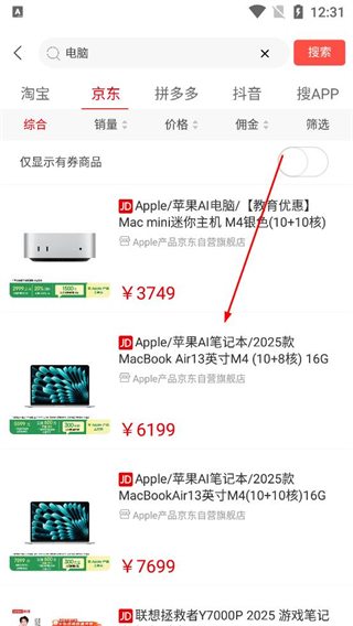 3、在商品列表中選擇想要查看的商品條目,比如Apple筆記本2025款,點擊進入該商品的詳情頁面了解信息。