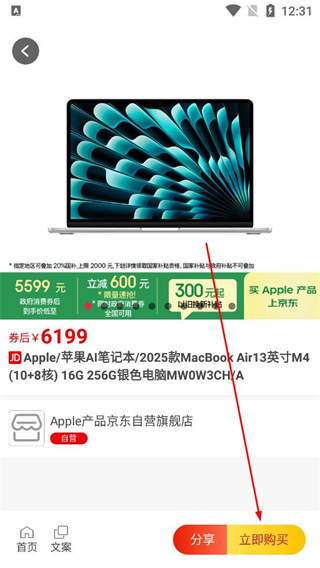 4、在商品詳情頁查看價格優惠及配置等內容,確認需求后點擊立即購買按鈕,進入下單流程完成商品購買。