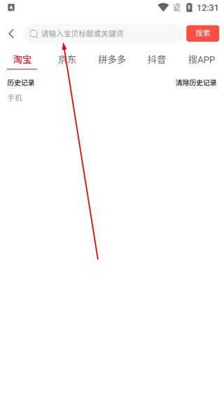 2、登錄成功后進入搜索頁面,在搜索框輸入關鍵詞,選擇淘寶等平臺分類,點擊搜索按鈕,查看對應平臺的商品列表。