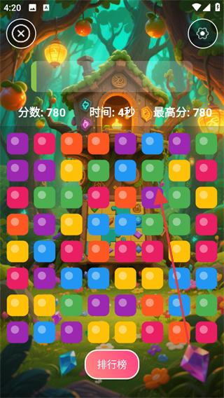 3、持續觀察方塊布局,快速找到可消除的相同方塊組合,不斷進行消除操作,爭取在有限時間內獲取更高分數。