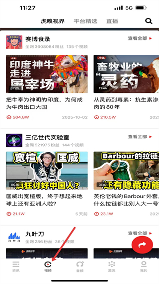 2、視頻界面有多個板塊,展示印度神牛、匡威等視頻內容,還有多個創作者的視頻推薦,底部功能入口一致。