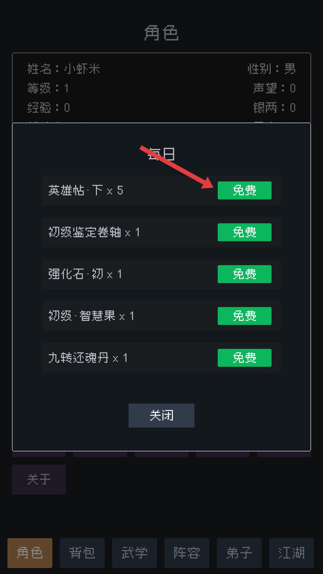 3、領取每日福利,點擊免費獲取英雄帖、鑒定卷軸等道具,用于招募、裝備鑒定,助力成長。