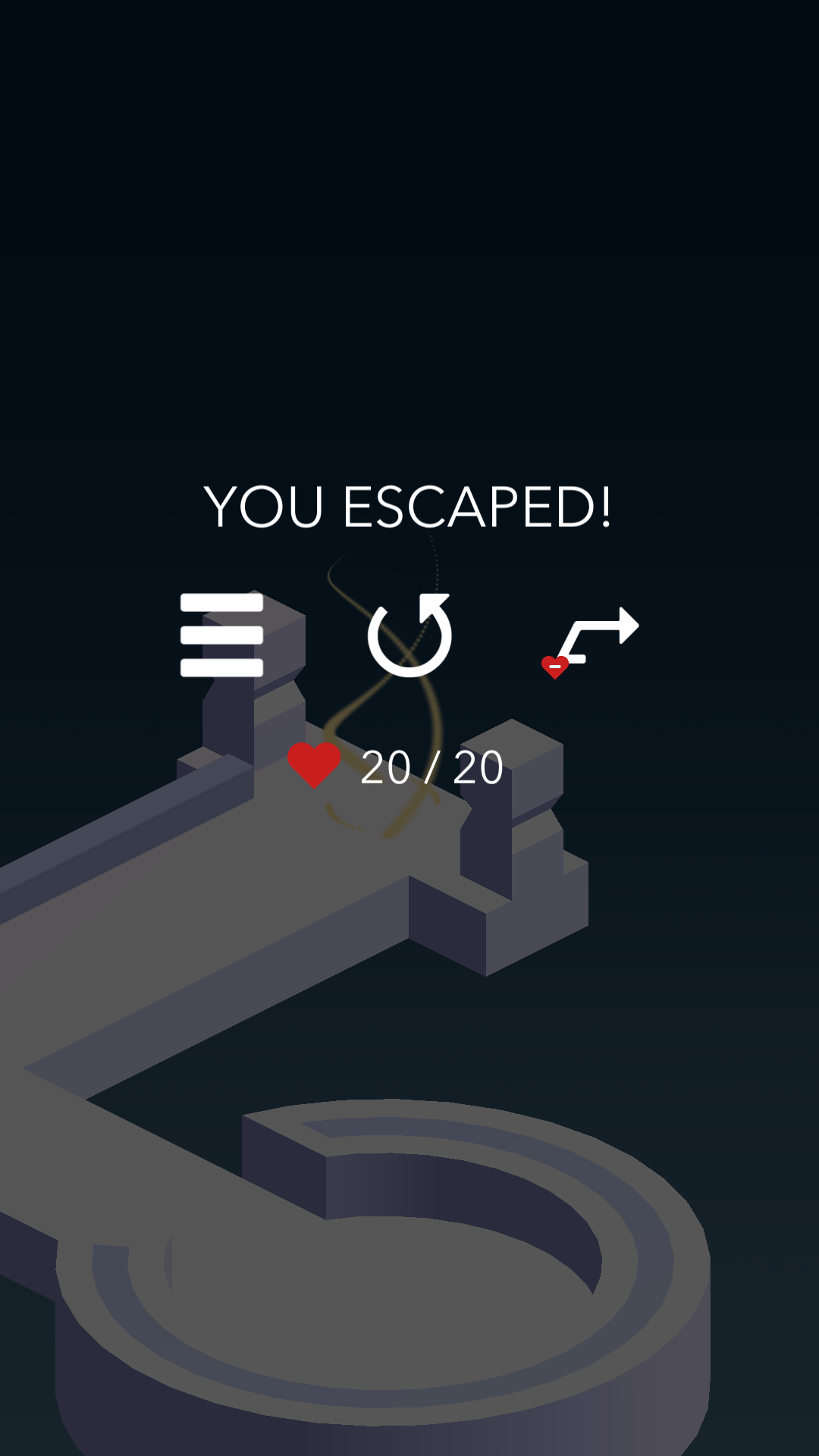 4、成功逃脫后界面顯示已逃脫,此時可選擇繼續挑戰下一關,或重新游玩本關,也可返回菜單界面。