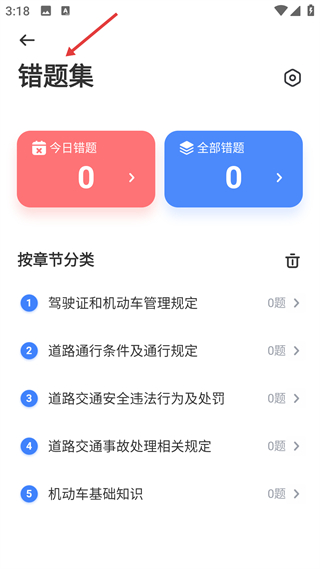 2、錯題集頁面,按今日全部錯題分類,支持按章節查看錯題如駕駛證管理規定等,可針對性鞏固薄弱知識點。