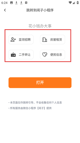 3、小程序跳轉頁,引導進入鬧子小程序,提供藍領招聘等服務,是功能拓展的外部銜接入口。