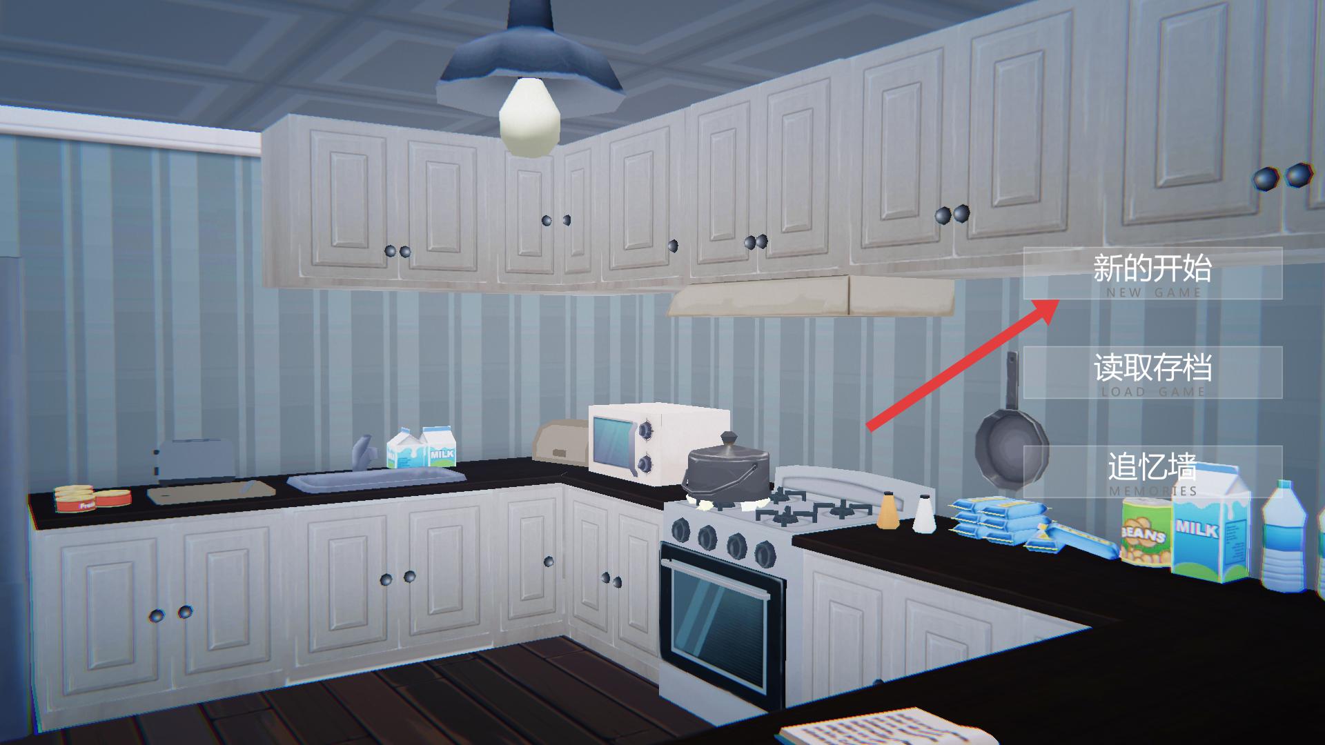 1、在廚房界面選新的開始,開啟游戲旅程,進入初始場景,按引導熟悉操作,推進故事線。