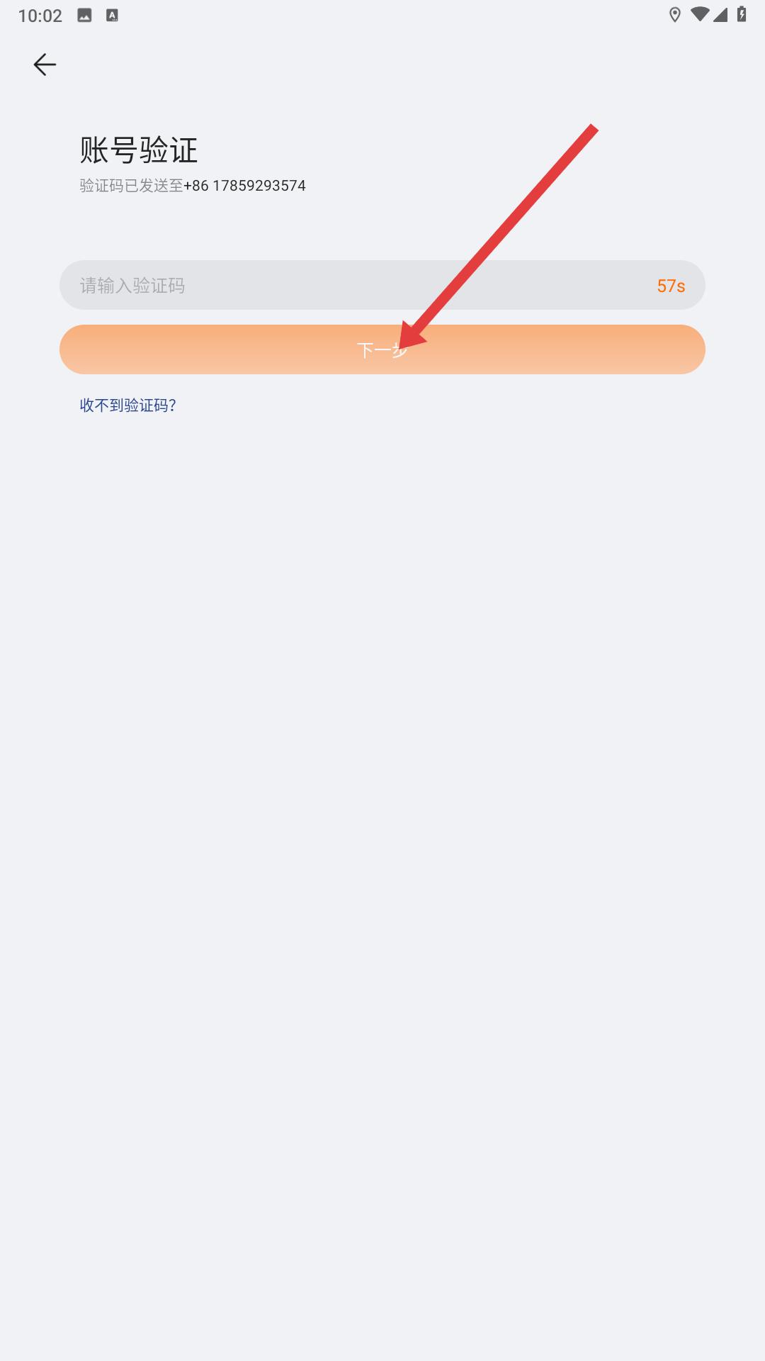 3、賬號驗證界面,輸入收到的驗證碼后點擊下一步,可完成賬號驗證操作。