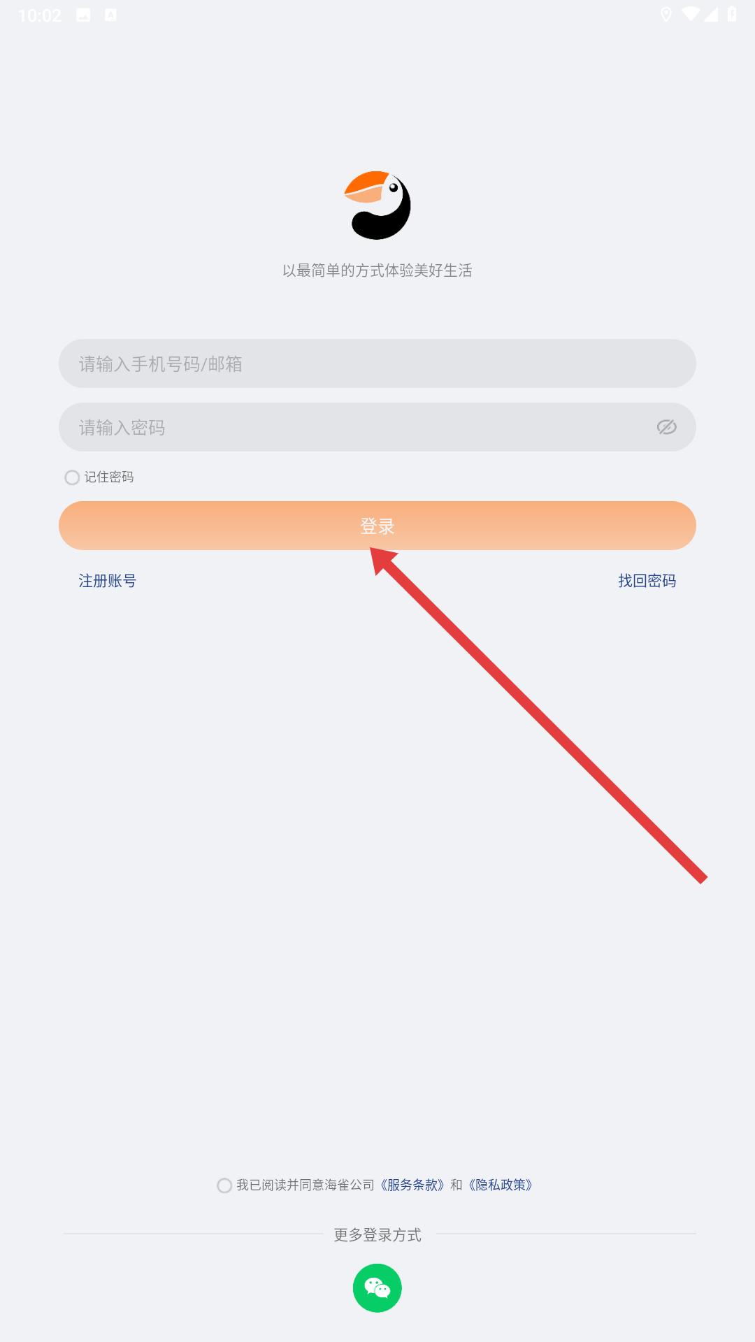 1、進入APP后,登錄界面輸入手機號碼、郵箱和密碼,勾選同意條款后點擊登錄,可完成賬號登錄操作。