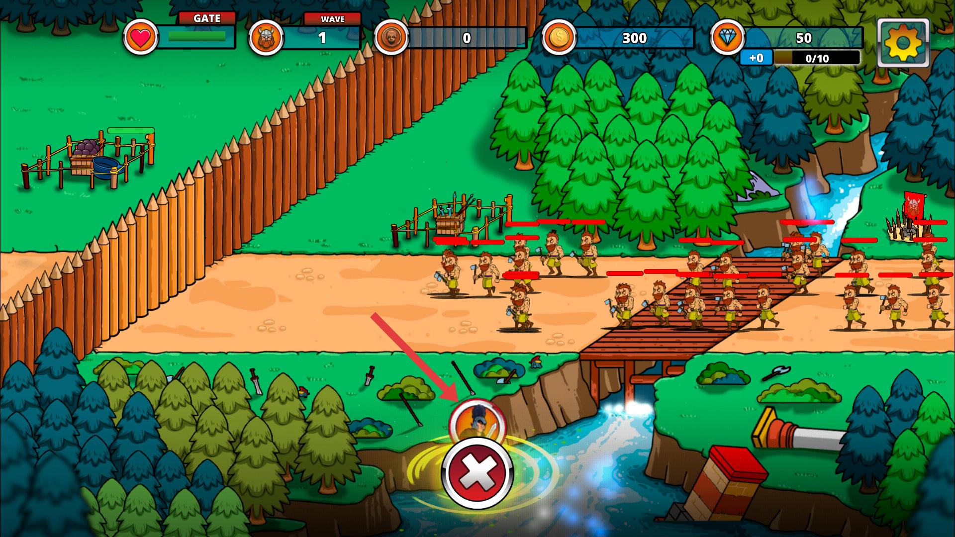 2、戰斗時放置英雄,阻擋敵方路徑,合理分配兵力,優先攻擊前排敵人,守護己方陣地。