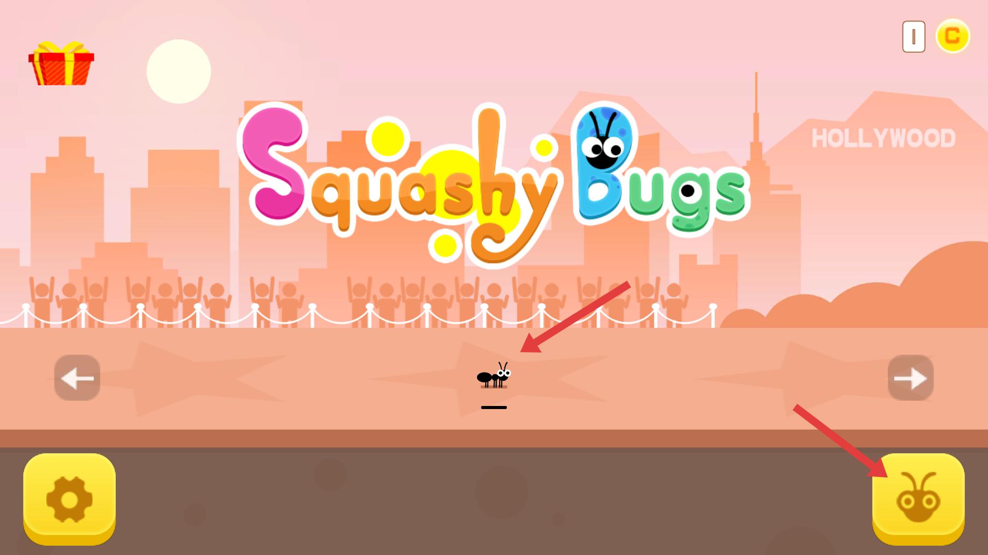 1、游戲初始界面顯示游戲名稱,點擊右側帶蟲子圖案的按鈕,進入角色選擇界面,準備開始游戲。