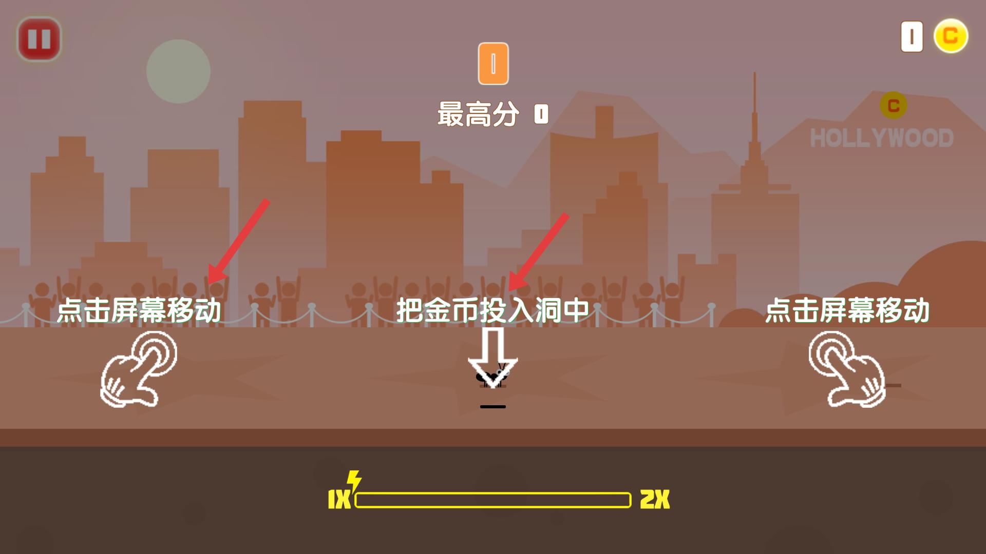 3、進入游戲后按提示點擊屏幕移動,控制角色將金幣投入洞中,同時注意躲避危險,積累分數。