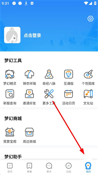 3、我的界面,可點擊登錄,使用網易通行證和密碼登錄賬號,登錄后能使用夢幻精靈、錦衣祥瑞等夢幻工具,以及參與夢幻商城相關功能。