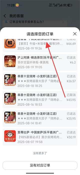 3、若需進一步處理點擊選擇訂單,可查看歷史訂單列表,選擇對應的超時訂單,以便客服更準確地解決問題。