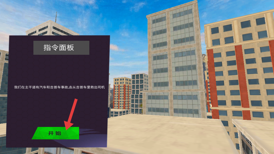 3、指令面板會發布救援任務,如主干道汽車和吉普車事故,需救出吉普車里的司機,點擊開始即可執行該救援任務。
