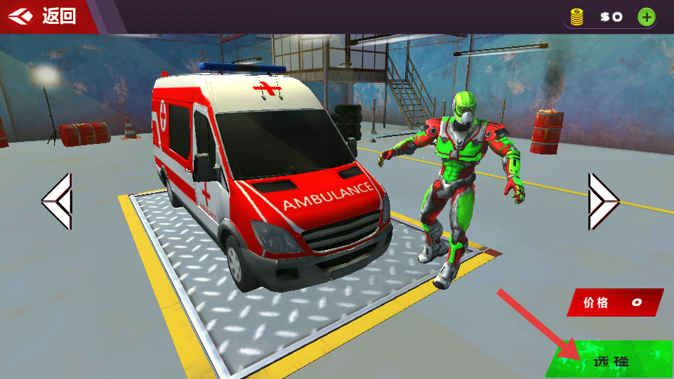 1、界面中有救護車和角色,點擊選擇按鈕可選取救護車,為后續執行救援任務做準備,玩家即可開啟救援之旅。