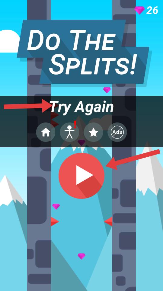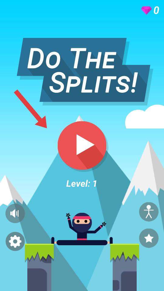 1、進入游戲,能看到顯示DO THE SPLITS字樣的界面,下方有紅色播放按鈕,點擊它即可開啟第一關游戲,開啟挑戰。