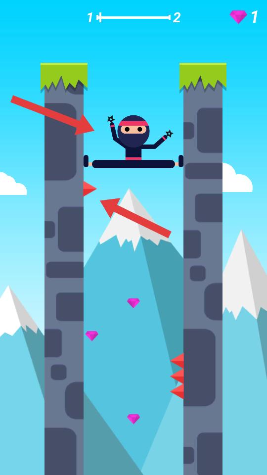 2、游戲中要操控角色在兩根柱子間做劈叉動作前進,過程中需躲避尖刺等障礙,還能收集紫色鉆石。