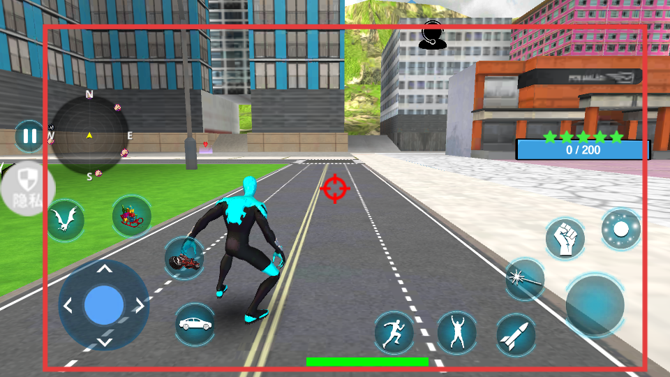 4、玩家進入城市場景中,用左側虛擬搖桿控制角色移動,右側按鈕釋放技能、攻擊,根據任務目標,尋找并消滅敵人推進任務。