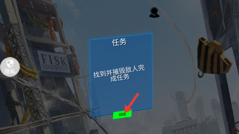 3、接到找到并摧毀敵人完成任務的任務提示后,點擊繼續就能進入任務場景,開始執行摧毀敵人的任務。
