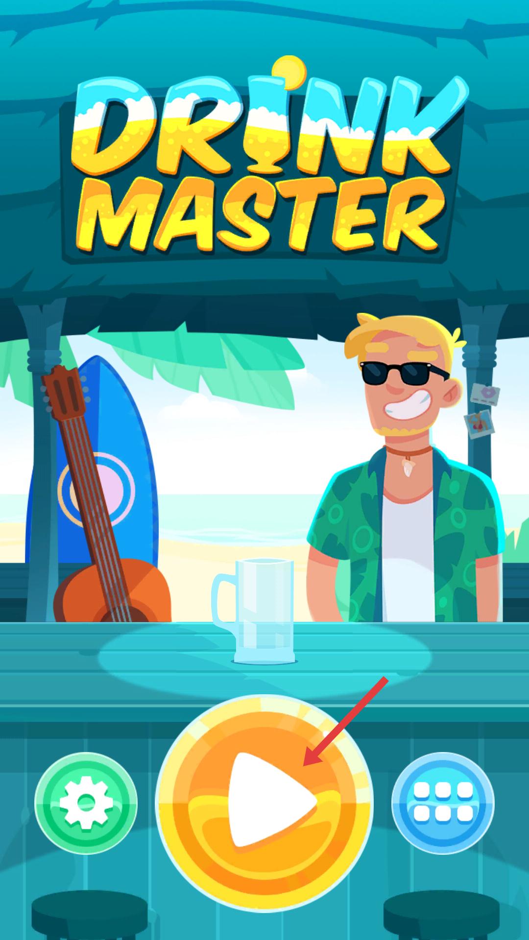 1、游戲初始界面顯示游戲名稱,點擊中間橙色播放按鈕即可進入游戲,開啟調酒挑戰。
