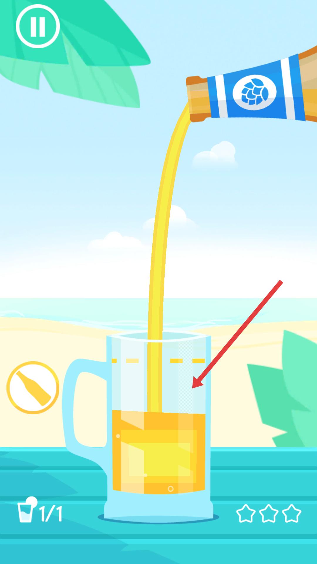 3、倒酒時觀察酒杯中液體高度,在接近標線時停止倒酒,精準控制倒酒量,以獲得更好成績。