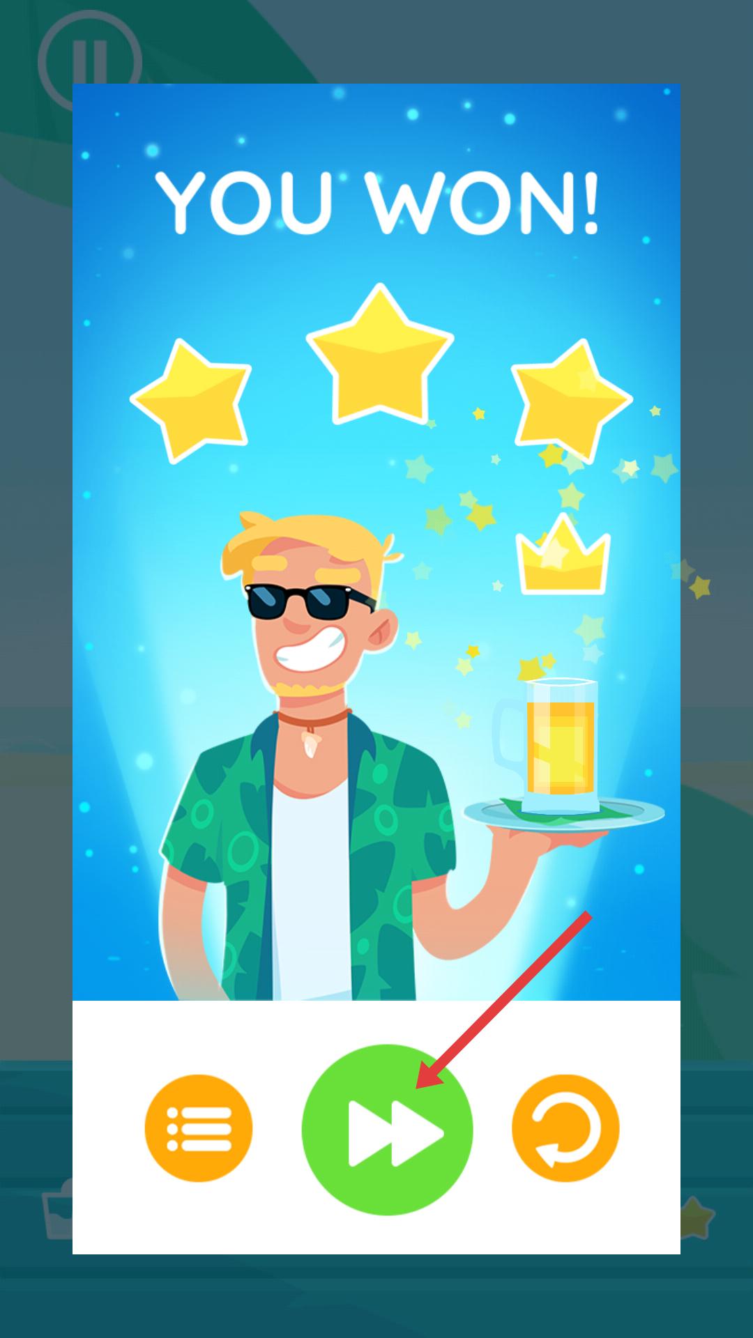 4、成功完成倒酒后界面顯示勝利,獲得三星評價,點擊綠色箭頭按鈕,進入下一關繼續挑戰。