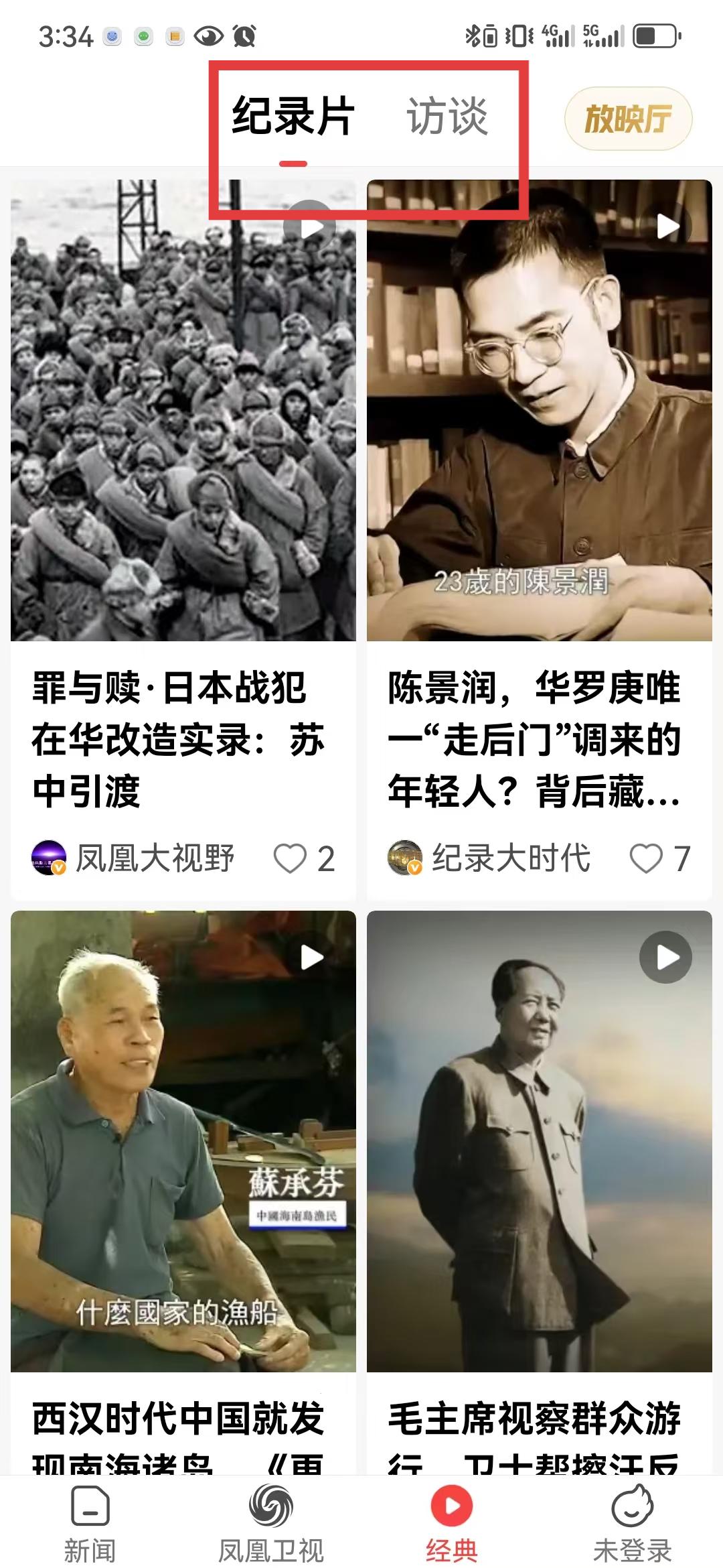 3、點擊底部經典標簽,頁面上方有紀錄片、訪談等分類,切換到這些分類能瀏覽對應的視頻內容,紀錄片展現人文、自然等多元題材,選擇具體視頻即可進行觀看。