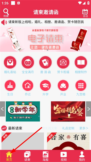 1.增加升學請柬、開業、喬遷、生日、邀請函等請柬模板;
