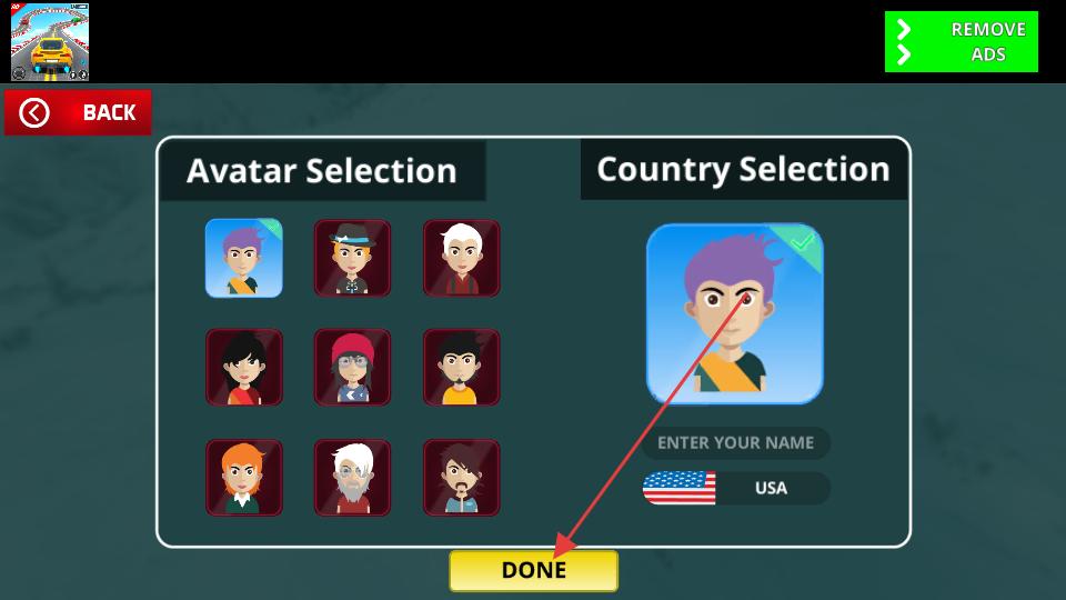 1、進入游戲先在角色選擇界面挑選喜歡的角色形象,選好后點擊下方DONE按鈕,確認選擇并進入下一個界面。