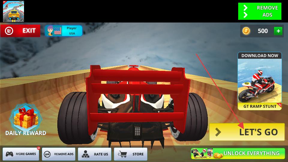 2、來到賽車準備界面能看到賽車和相關選項,點擊LETSGO按鈕,即可進入賽車駕駛場景。