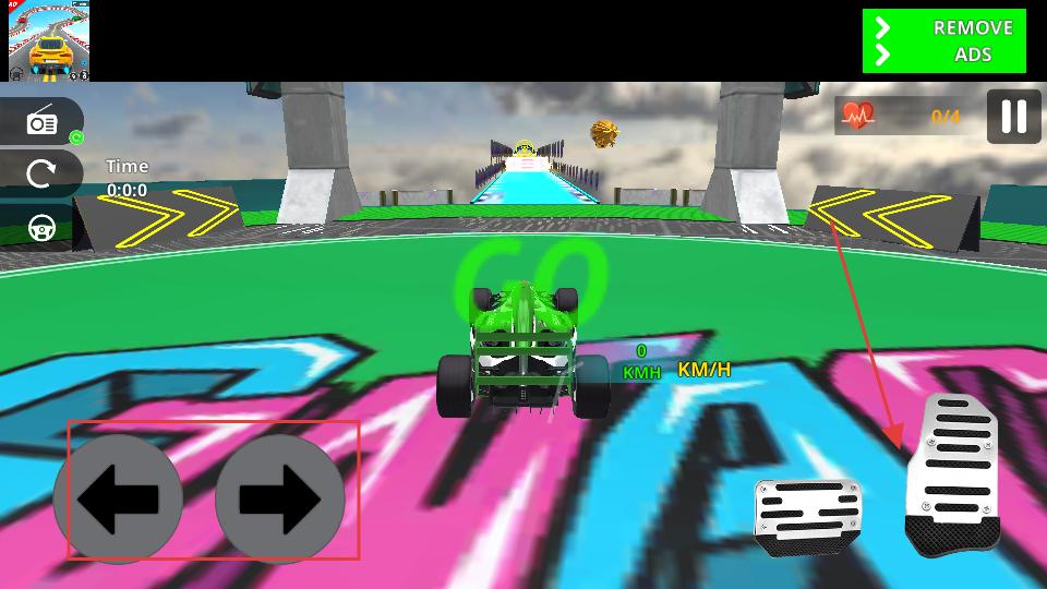 3、在駕駛場景中屏幕下方有左右箭頭按鈕,點擊它們可以控制賽車左右轉向,還有油門等控制按鈕,點擊油門能讓賽車加速前進。