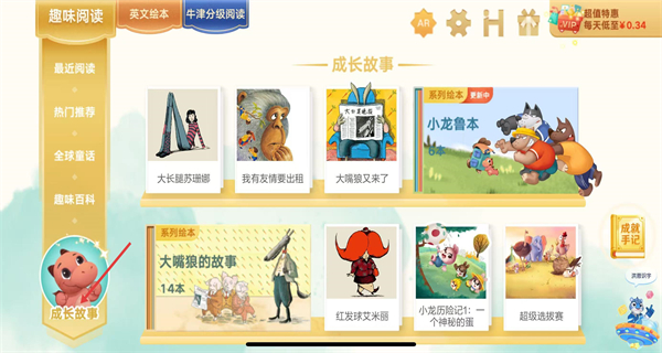 4. 支持趣味閱讀和分級閱讀模式切換,以及繪本分類篩選。