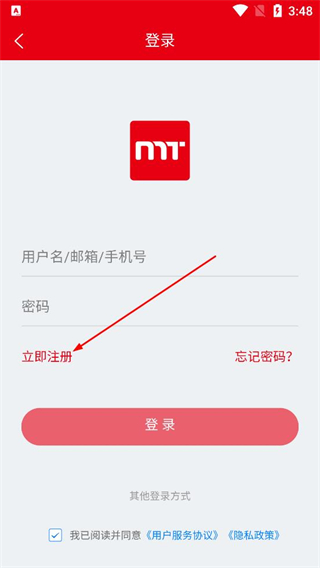 1、打開美題app,進入我的頁面,點擊登錄注冊選項,進入登錄界面,選擇立即注冊按鈕,跳轉至注冊頁面準備完成賬號注冊。