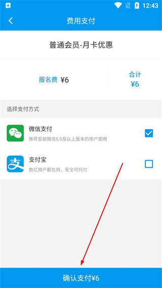4、確認所選支付方式與金額點擊確認支付按鈕,按照支付渠道的提示完成操作,即可成功開通月卡會員,享受對應的會員權益。