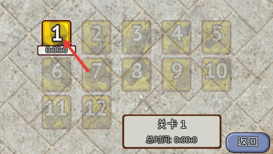 3、在關卡列表中點擊標有1的關卡,開始第一關挑戰,初始關卡難度較低,可逐步熟悉游戲操作與施工流程。