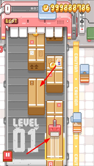 3、在關卡內操控工具處理移動的包裹,完成對應操作來獲取金幣,同時留意包裹的移動節奏,提升操作效率。