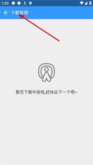 4、下載管理界面,可查看下載中游戲,若暫無下載中游戲,可返回選擇其他游戲進行下載,方便管理游戲下載進程。