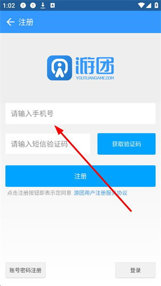 3、進入注冊界面,需輸入手機號、短信驗證碼,點擊注冊按鈕完成注冊,也可選擇賬號密碼注冊或直接登錄,按流程操作即可擁有平臺賬號。