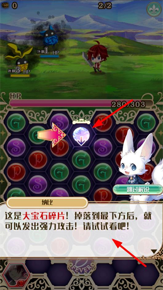 4、消除大寶石碎片,待其掉落到最下方可發出強力攻擊,利用此攻擊擊敗敵人,獲得戰斗勝利。
