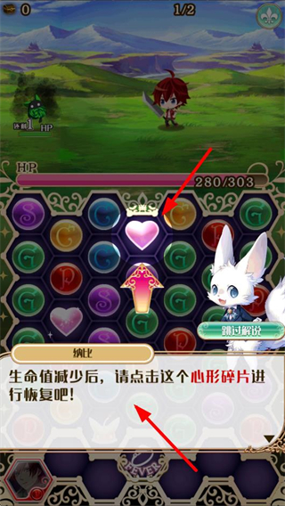 3、生命值減少后點擊心形碎片可進行恢復,合理使用心形碎片,保持王子生命,持續戰斗。