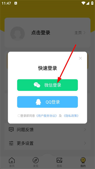 3、觸發快速登錄彈窗后,提供微信登錄和QQ登錄兩種方式,登錄前需勾選同意相關協議,選擇對應方式完成賬號登錄操作。
