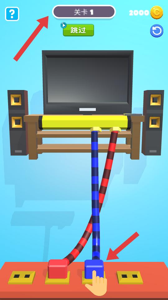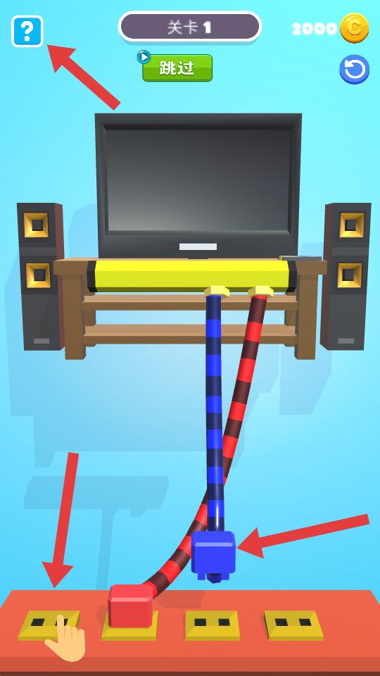 3、在操作時可借助界面左上角的問號按鈕獲取提示,更好地完成方塊與插座的對應連接,推進游戲。