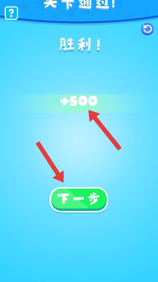 4、成功為電視接通電源后,會顯示勝利,獲得500的獎勵,此時點擊下一步,就能繼續后續關卡。