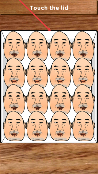 2、玩家進入游戲畫面后,根據提示Touch the lid,點擊畫面上方的蓋子,露出排列整齊的大叔頭像。