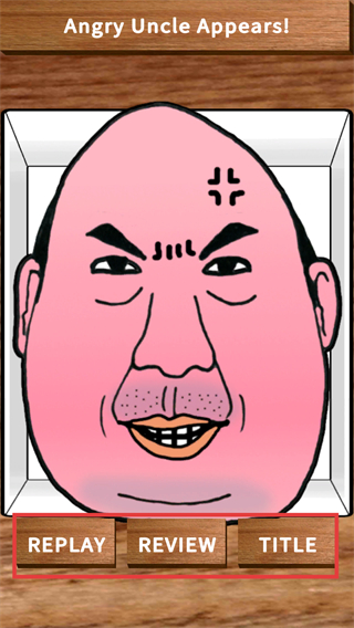 4、當憤怒的大叔頭像出現意味著游戲失敗條件觸發游戲結束,此時可以點擊REPLAY重新開始游戲再次挑戰。