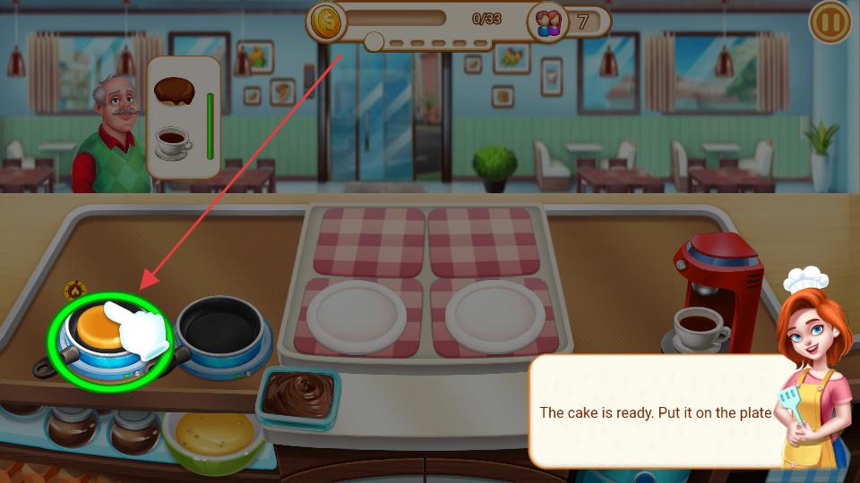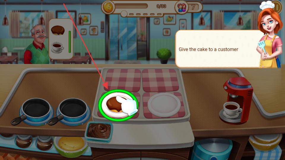 4、最后當美食制作完成且裝飾好后,點擊盤子里的美食,將其端給餐廳里的顧客,完成一次美食服務。