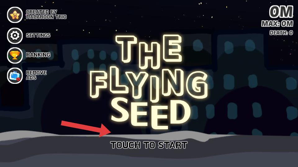 1、進入游戲,界面有TOUCH TO START提示,觸摸屏幕就能開啟游戲,讓種子開始飛行冒險。