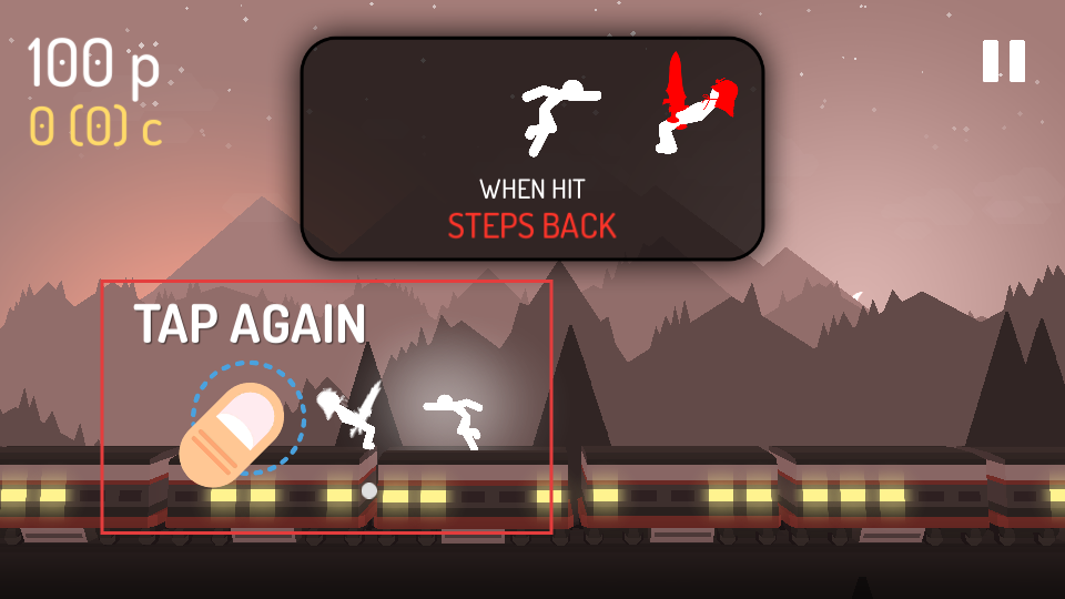 3、若火柴人被敵人擊中會后退,此時要快速再次點擊屏幕,讓火柴人調整狀態,繼續與敵人戰斗,避免被擊敗。