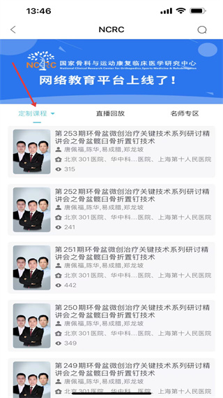 1、NCRC臨床研究中心平臺,有定制課程等板塊,定制課程涵蓋多期環骨盆微創治療研討,助力學習骨盆髖臼骨折置釘技術。