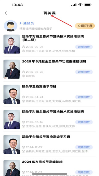 3、菁英課包含多期膝關節置換、肩關節精訓班及論壇,可觀看回放,助力醫師學習高端骨科技術。